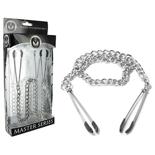 S&M Exs & Ohs Body Jewelry with Nipple Ties - Metal Chain with Nipple Ties