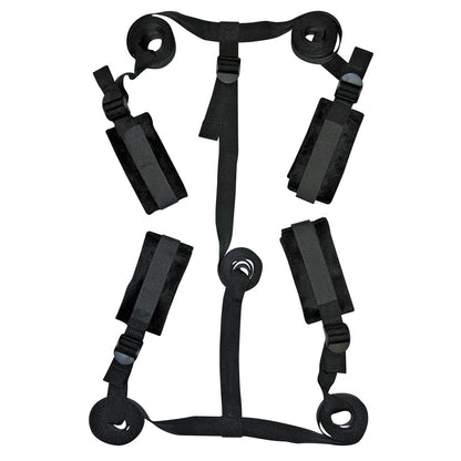 Make any bed your bondage playground with this easy to install kit. No bed posts required! Four soft cuffs are attached to 1.5 metre adjustable straps. Also includes a 1.5 metre adjustable connector strap for a secure fit. Portable and perfect for travel.